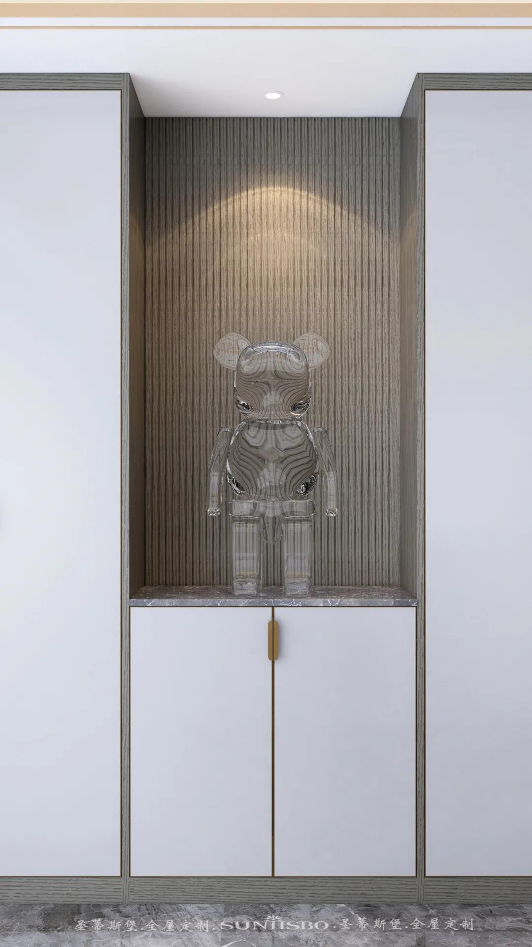 兒童房的主色調(diào)是白色,空間運(yùn)用不同程度的粉色展現(xiàn)出一個(gè)充滿童真的空間氛圍,布偶小熊,別致的兒童擺件都是對(duì)女兒活動(dòng)空間的精選,在燈光的渲染下,呈現(xiàn)出溫馨舒適的氛圍。