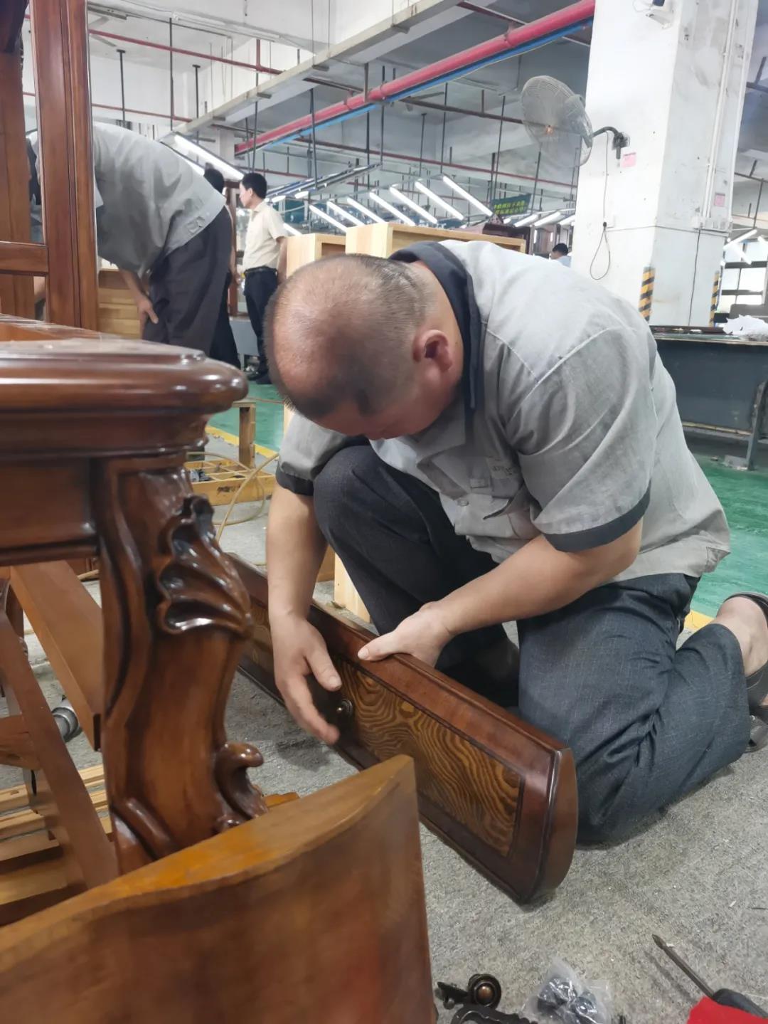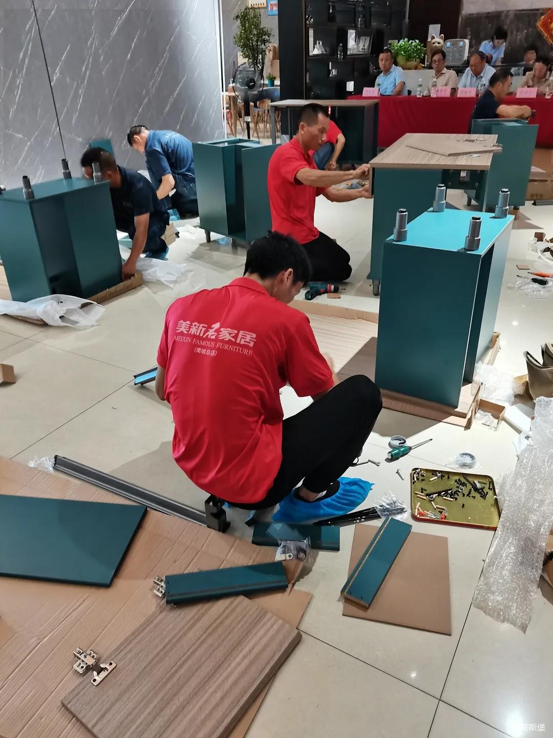 七月,一個熱情似火的季節(jié),一串串滑落的汗珠渲染著現(xiàn)場安靜而緊張氣氛。比賽現(xiàn)場,來自江門金海馬商場和南城美新名家具商場的參賽選手各司其職,聚精會神地投入比賽,憑借著專業(yè)的技能,一絲不茍的將一個個小部件嫻熟而準確無誤地組裝起來,打造高質(zhì)量,細品質(zhì)的家具產(chǎn)品。